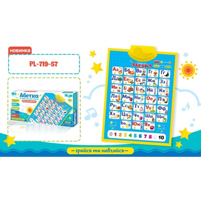 Плакат «Абетка» навчальний з українською озвучкою: українська абетка, цифри, кольори, вірші, на батарейці, у корбці 46,5х3х21см