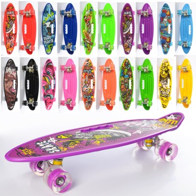 Пенні-борд 59х16 см з алюмінієвою підвіскою, колесами ПУ зі світлом та антиковзаючою поверхнею, в асортименті