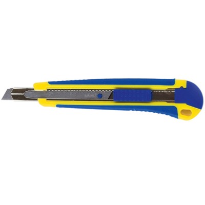 Ніж універсальний з шириною леза 9 мм, металева направляюча, пластиковий корпус з гумовими вставками.