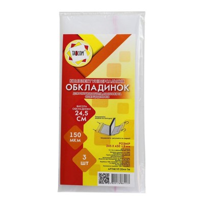 Комплект регульованих обкладинок h 245 для робочих зошитів та посібників клейові п/е 150, 3 шт у наборі, ТМ Tascom