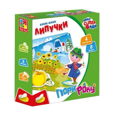 Гра настільна «Вжик-вжик Липучки. Пори року» з 4 ігрових полів та 8 фігурок на липучках, у коробці 18,5х4,5х18,5 см, ТМ Vladi Toys
