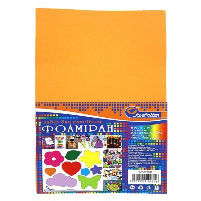Фоаміран А4 товщиною 1,7 мм 10 аркушів з клеєм, помаранчевий, ТМ J.Otten
