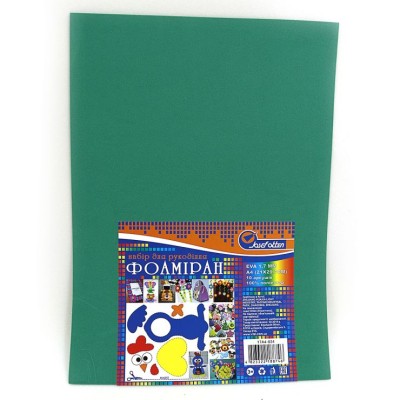 Фоаміран А4 товщиною 1,7 мм 10 аркушів з клеєм, зелений, ТМ J.Otten