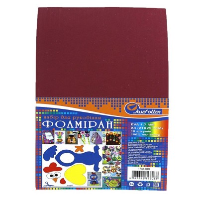 Фоаміран А4 товщиною 1,7 мм 10 аркушів з клеєм, бордовий, ТМ J.Otten
