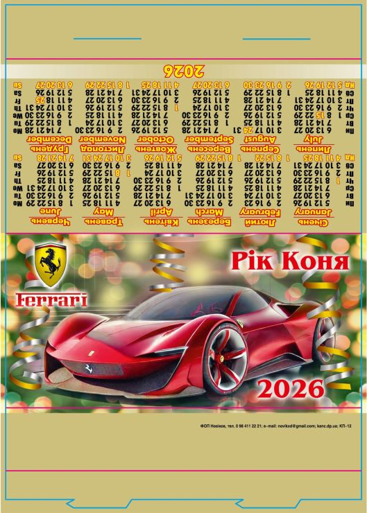 Календар-стійка «Феррарі» 29,5х21 см